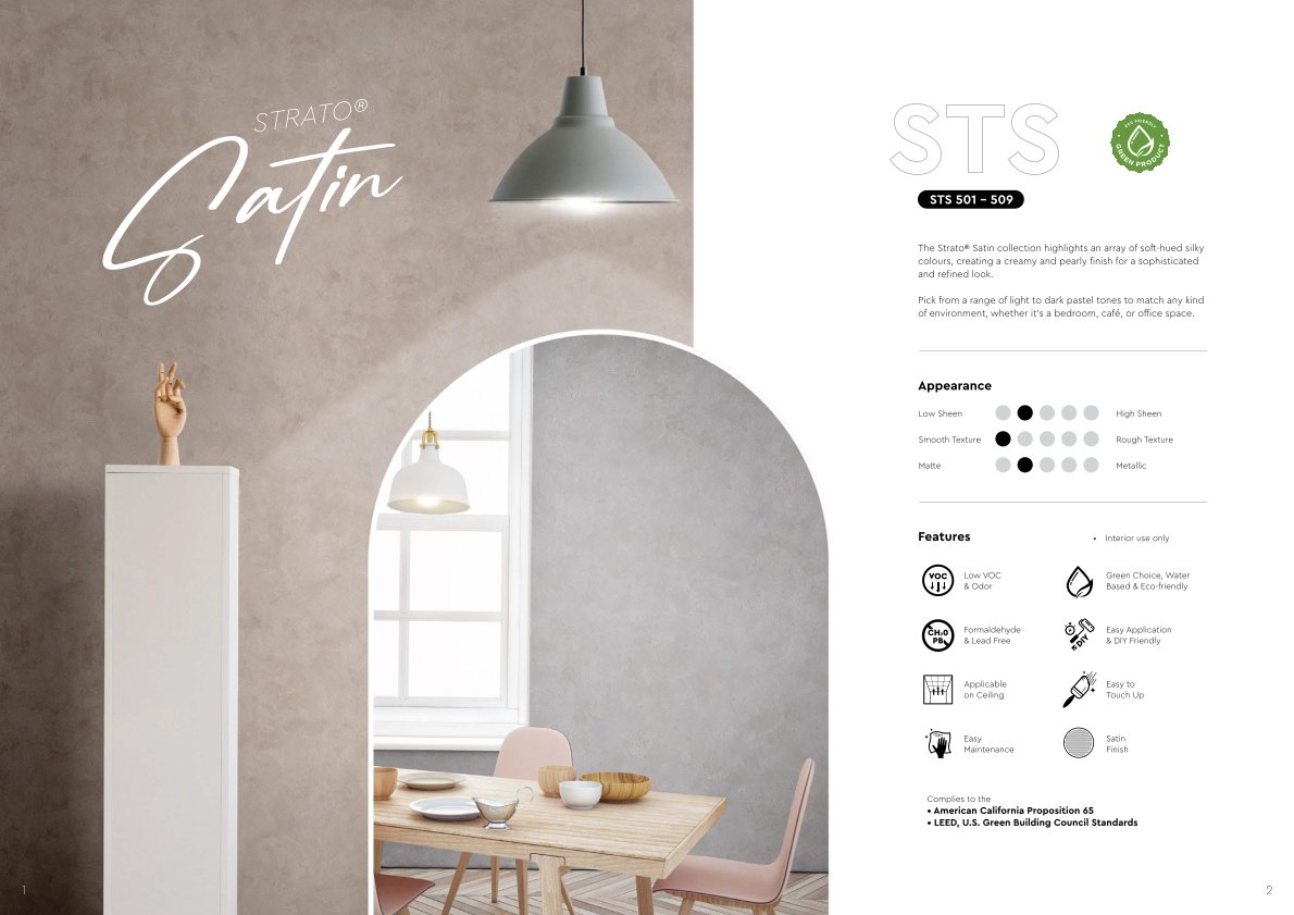 จาก Loft Studio นำเสนอสีเทกเจอร์พรีเมียมที่มอบความหรูหราและความนุ่มนวลแบบซาติน ให้ผนังของคุณสะท้อนความสง่างามและทันสมัยในทุกมุมมอง เนื้อสีเรียบเนียน มีมิติ และให้ประกายแวววาวแบบซอฟต์เมทัลลิก ทนทานต่อรอยขีดข่วนและสภาพอากาศทั้งภายในและภายนอก โทนสีคัดสรรอย่างประณีต เติมเต็มบรรยากาศสไตล์ Loft ด้วยความละเอียดอ่อนและหรูหรา ทุกการสัมผัสมอบความรู้สึกเหนือระดับและอบอุ่น เนื้อสีเรียบ กลมกลืนกับแสงและเงาอย่างมีศิลปะ ใช้งานง่าย ทำความสะอาดสะดวก และบำรุงรักษาง่าย เหมาะกับผนังอาคาร บ้านพักอาศัย หรือโครงการเชิงพาณิชย์ทุกประเภท คงความสวยงามยาวนาน และยกระดับงานตกแต่งทุกพื้นที่ให้หรูหราเหนือระดับ STRATO® METALLICS – SATIN (STS) คือทางเลือกสำหรับผู้ที่ต้องการความสง่างาม ความหรูหรา และประกายทันสมัยแบบ Loft อย่างแท้จริง